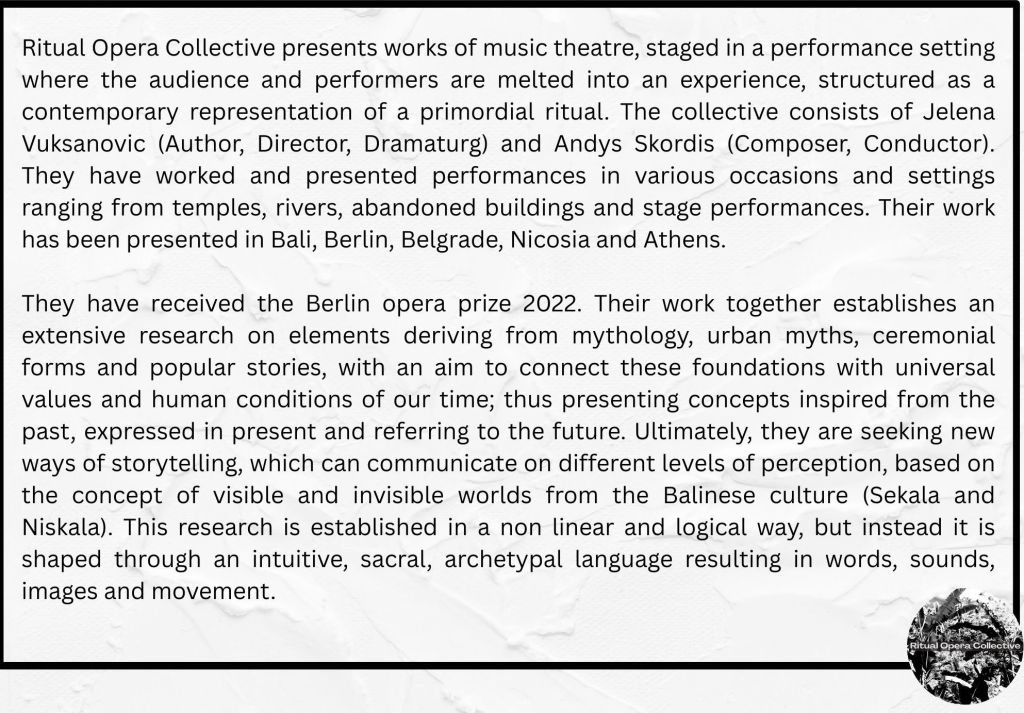 is a writer, theatre practitioner and facilitator, artistic director, and screenwriter. She has an MA in dramaturgy, and with a classical education, she was always drawn to knowledge and practice about contemporary and experimental theatre. She has worked with many independent theatre groups, developing artistic and educational projects, as for the communities and professionals. With many fascinations, her focus is on contemporary opera, site-specific theatre, sensory theatre, forum theatre and movies.