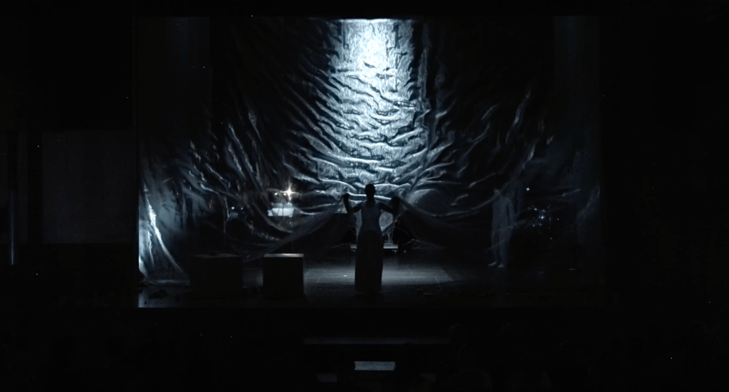 The libretto was written in a very minimalistic manner, raising the question of justice, justice system, and feeling of rightness. The tagline of the whole piece was “Guilty for being alive”, portraying the limbo of existence in which feeling of responsibility for unfortunes and injustice is stronger than any reasoning. Our artistic approach was to explore the Woman, and her own inner journey, depicting more her psychological and metaphysical world, rather than realism. She is left alone to deal with her own inner darkness, with no support, just condemnation for being on a trial for killing her child. We have incorporated two figures of Erinies, the Goddesses of guilt from the Greek mythology, as it was important for us to materialize this inner torture and guilt through characters. The language of the opera is sharp, precise, and in a sense reduced, followed by the force of the music and scenic changes depicting the inner process, intensities and intimate development of the characters.